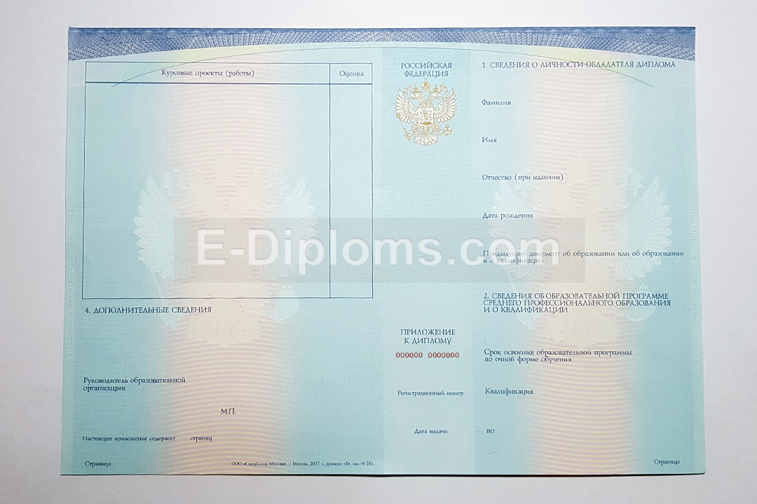 У нас на сайте Вы можете заказать диплом о среднем профессиональном образовании нового образца об окончании техникума / колледжа (специалист среднего звена) или пту (квалифицированный рабочий, служащий). Выбирайте любую профессию и ссуз, а мы качественно и профессионально изготовим ваш диплом. Доставка бесплатна, оплата при получении, для проживающих в регионах доступна услуга «макет», есть скидки. При заказе до 14.00 привезем уже завтра!