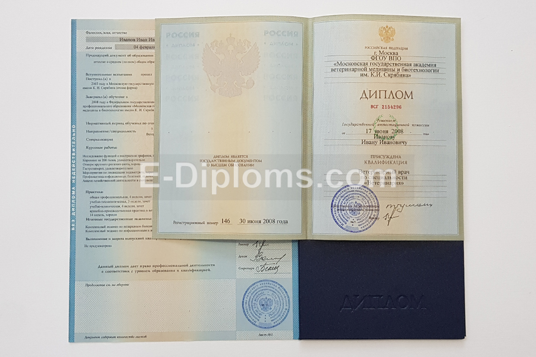 У нас на сайте Вы можете приобрести документ об окончании высшего учебного заведения с 2004 по 2009 года включительно. Выбирайте любое направление и специальность, а мы изготовим качественный документ, заполненный как в вузе в тот период. Доставим быстро и бесплатно, оплата курьеру при получении, для проживающих в регионах доступна услуга «макет», есть скидки. При заказе до 14.00 привезем уже завтра!